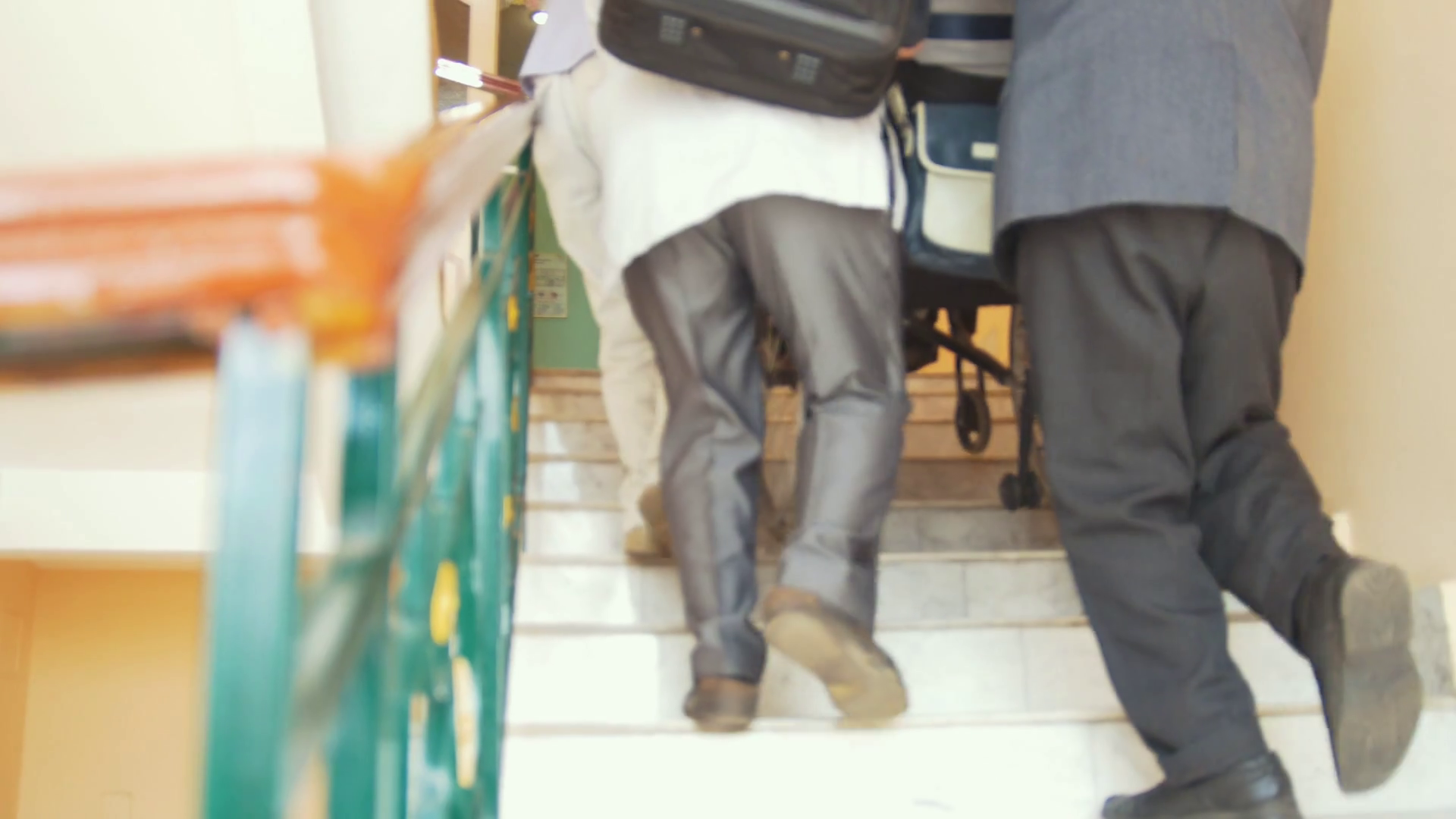 People bears the disabled man on wheelchair to stairs - inaccessible ...