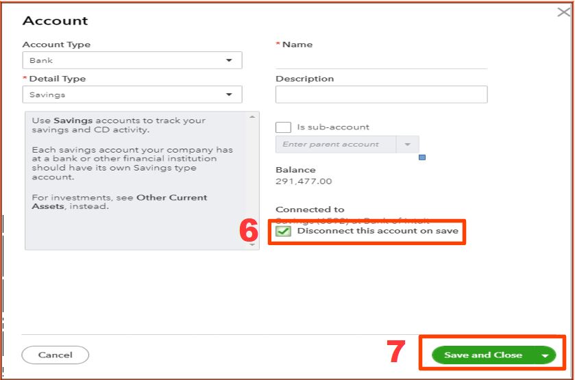 Delete/inactivate a bank account