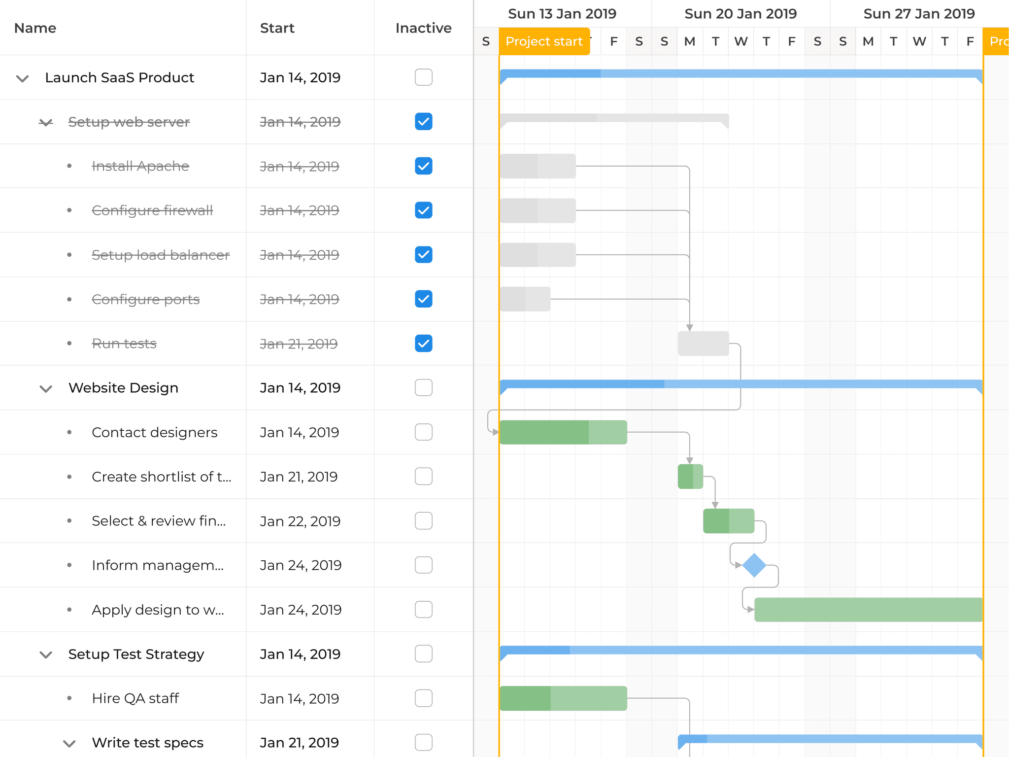 Inactive tasks feature - Bryntum