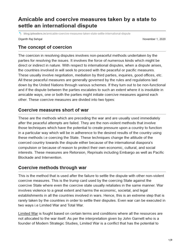Blog.ipleaders.in-amicable and Coercive Measures Taken by a State to ...