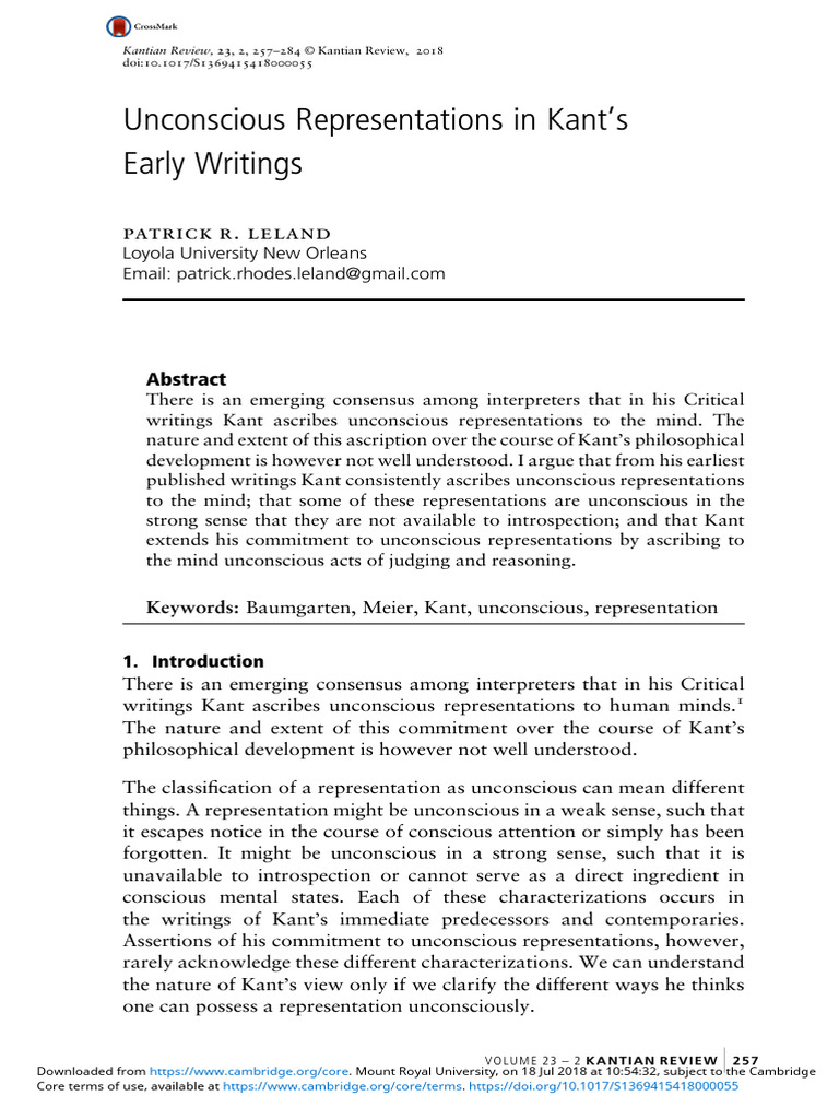 Unconscious Representations in Kant's Early Writings | PDF | Immanuel ...