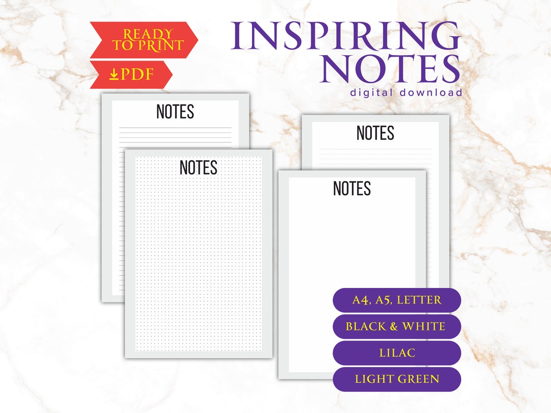 Inspiring Notes, Instant Download, Printable Pages, Diary Pages ...