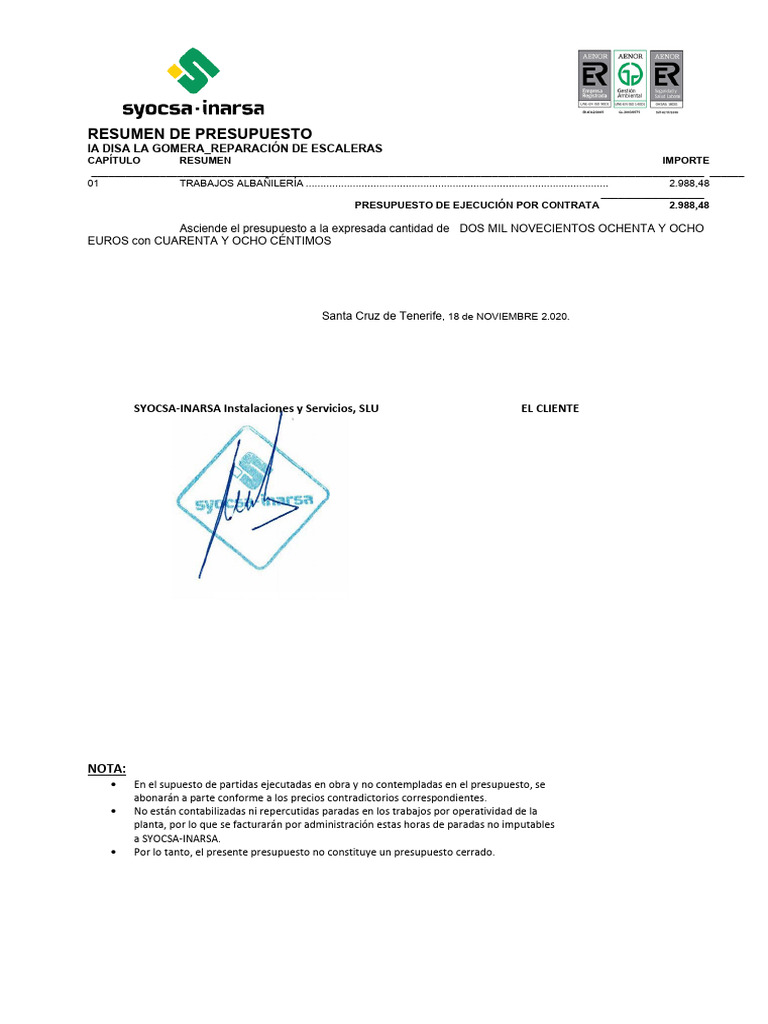 SYOCSA-INARSA - PTO - Reparación de EscaleraV1 | PDF | Ingeniero civil ...