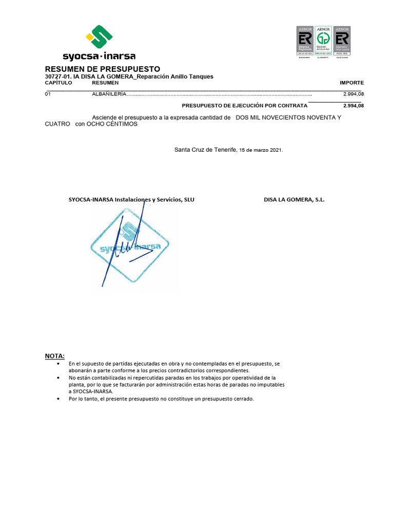 SYOCSA-INARSA - PTO - Reparación Anillo Tanques 1 y 2 - v1 | PDF ...
