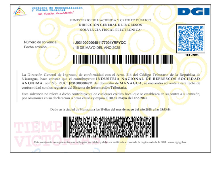 1.solvencia Fiscal INARSA Vigente Al 30 Mayo 2025 | PDF
