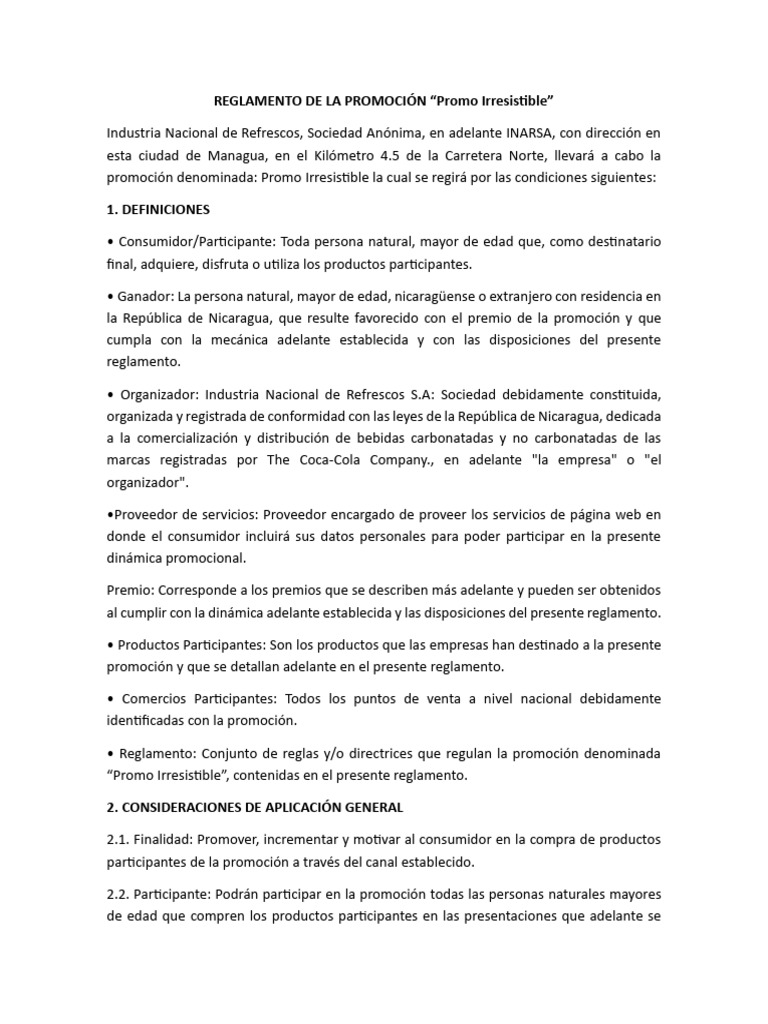 Reglamento Promo Irresistible INARSA | PDF | Anonimato | Regulación