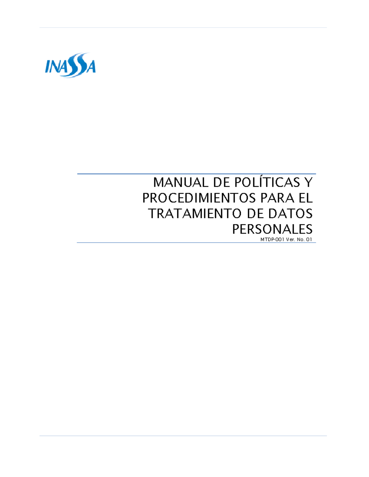 Inassa Manual DE POLí Ticas Y Procedimientos PARA EL Tratamiento DE ...