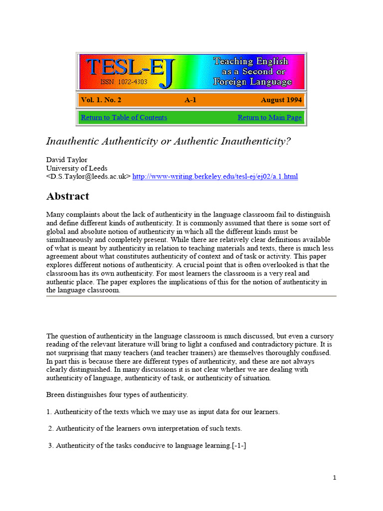 Inauthentic Authenticity | PDF | Learning | English As A Second Or ...