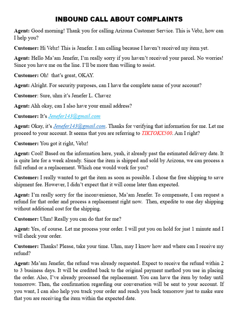 Script Inbound Mock Call Cus Service - Inbound Script Customer Service ...