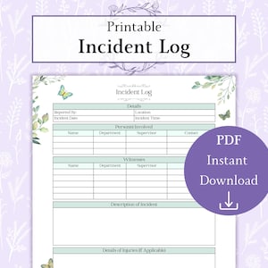 Printable Incident Log | Instant Download PDF | A4 and US Letter Sizes ...
