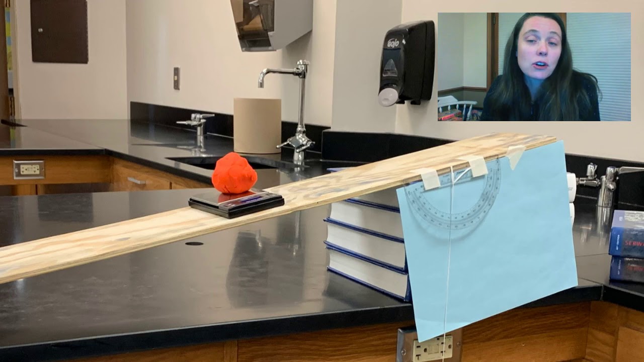 a Photo of physical inclined plane set-up (left). b Screenshot of ...