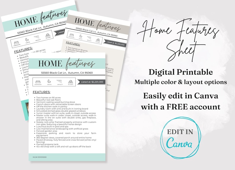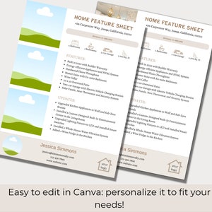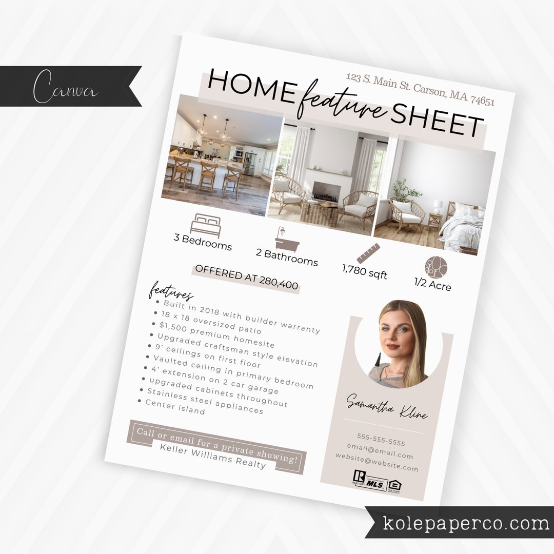 Real Estate Home Feature Sheet, INSTANT DOWNLOAD, Canva Template, House ...
