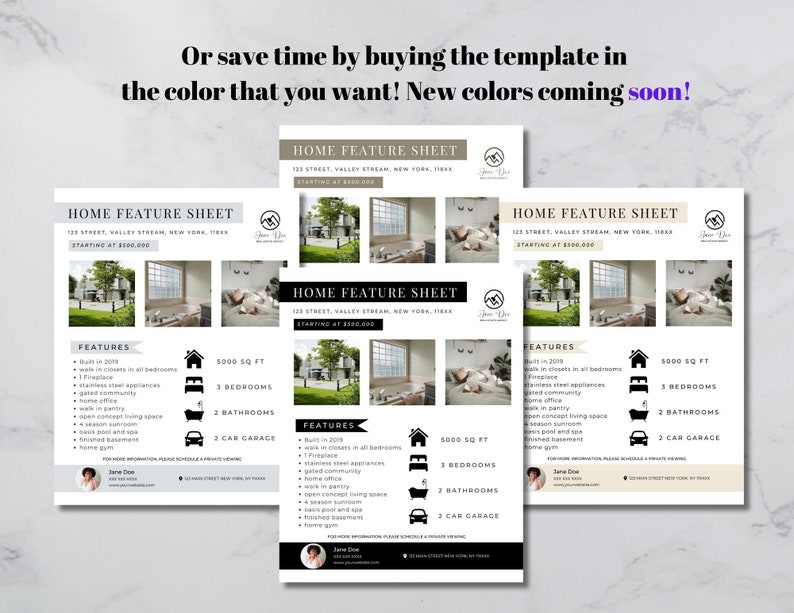 Real Estate Home Feature Sheet Bundle Template, Real Estate Marketing ...