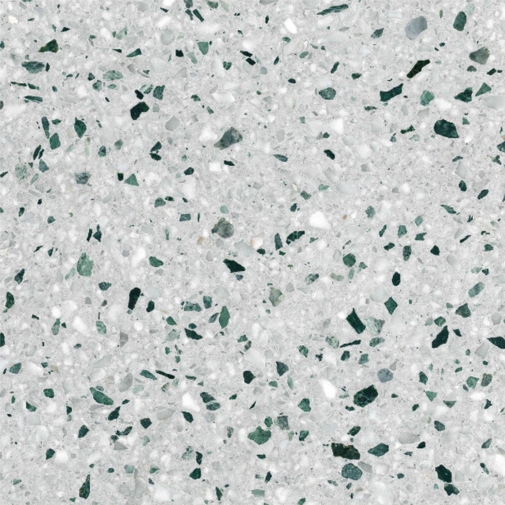 Piastrella in terrazzo, sfondo grigio con inclusioni bianche e verdi ...