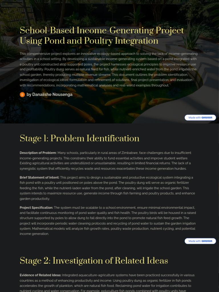 School Based Income Generating Project Using Pond and Poultry ...
