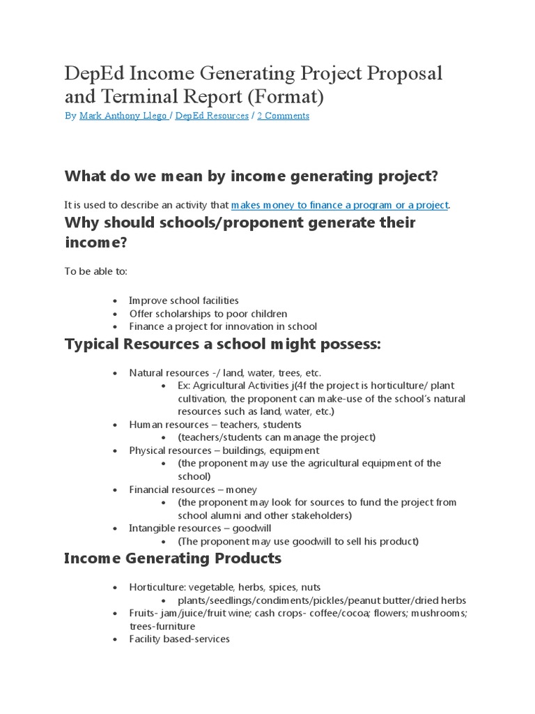Deped Income Generating Project Proposal and Terminal Report (Format ...
