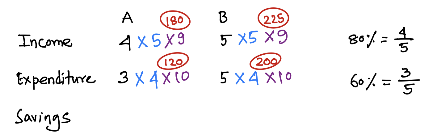 The income of A is 80% of B’s income and the expenditure