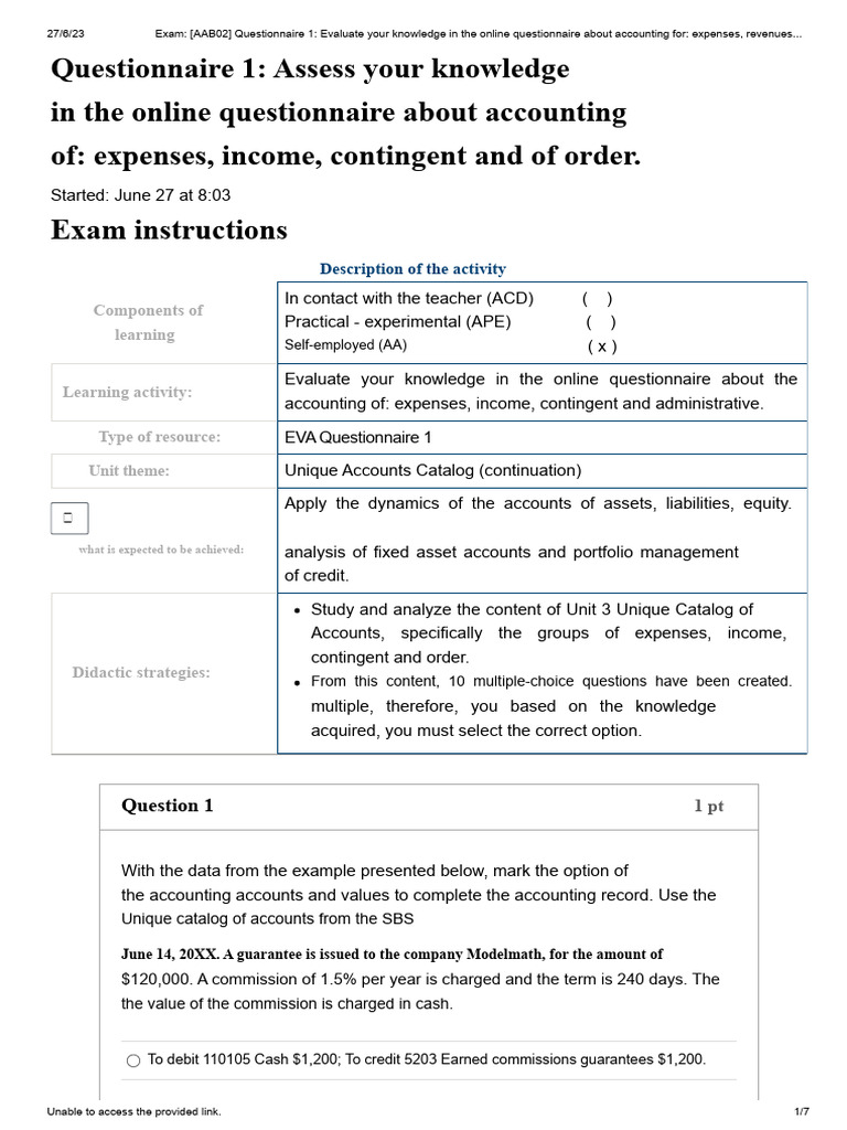 Questionnaire 1: Assess Your Knowledge in The Online Questionnaire ...