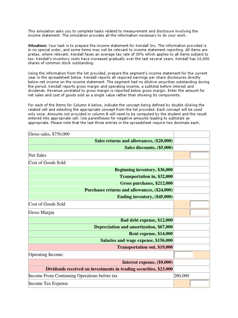 Income Statement Task | PDF | Expense | Income Statement