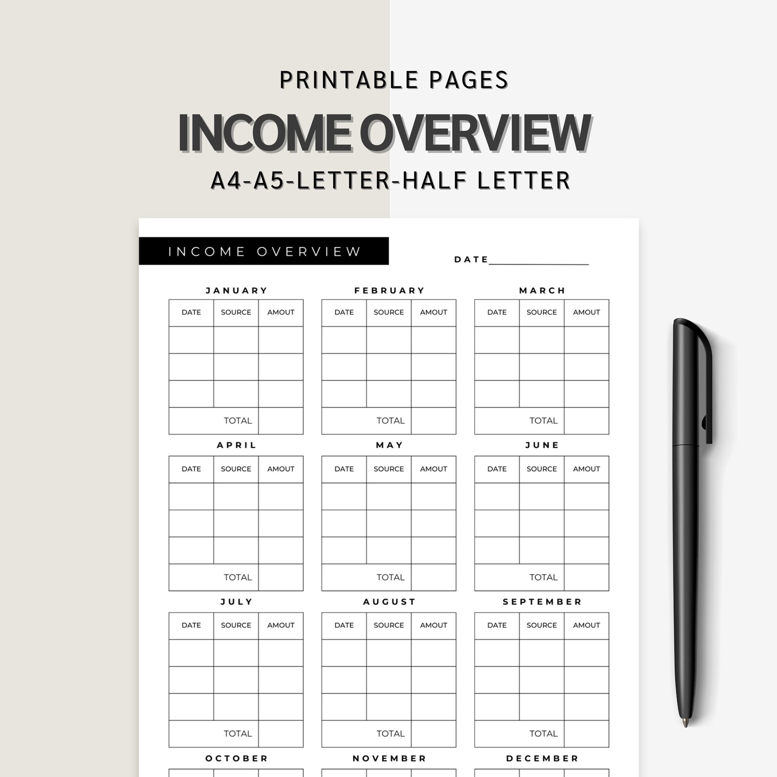 Income Overview Printable, Income Tracker, Money Management, Monthly ...
