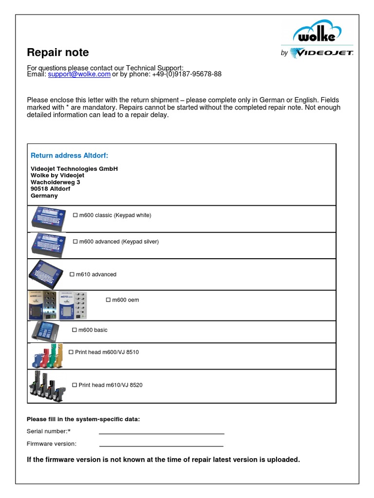 Repair Note Sheet September 2019 | PDF