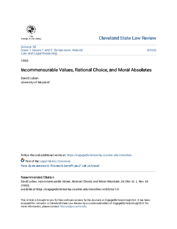(PDF) Incommensurable Values, Rational Choice, and Moral Absolutes