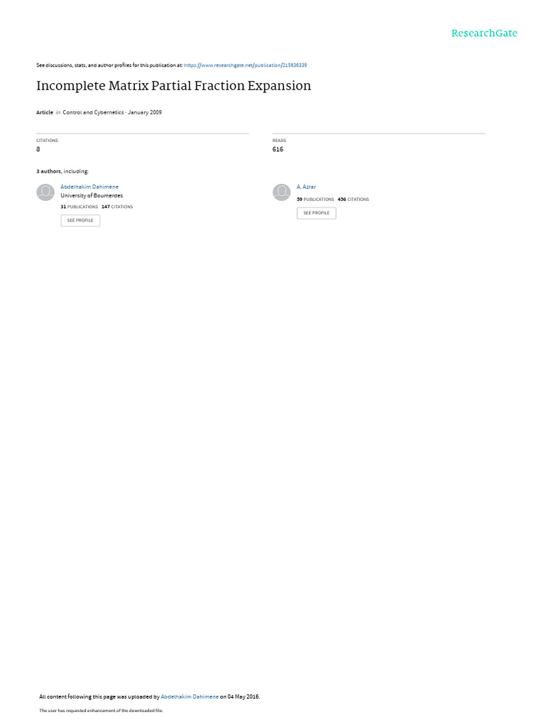 (PDF) Incomplete Matrix Partial Fraction Expansion