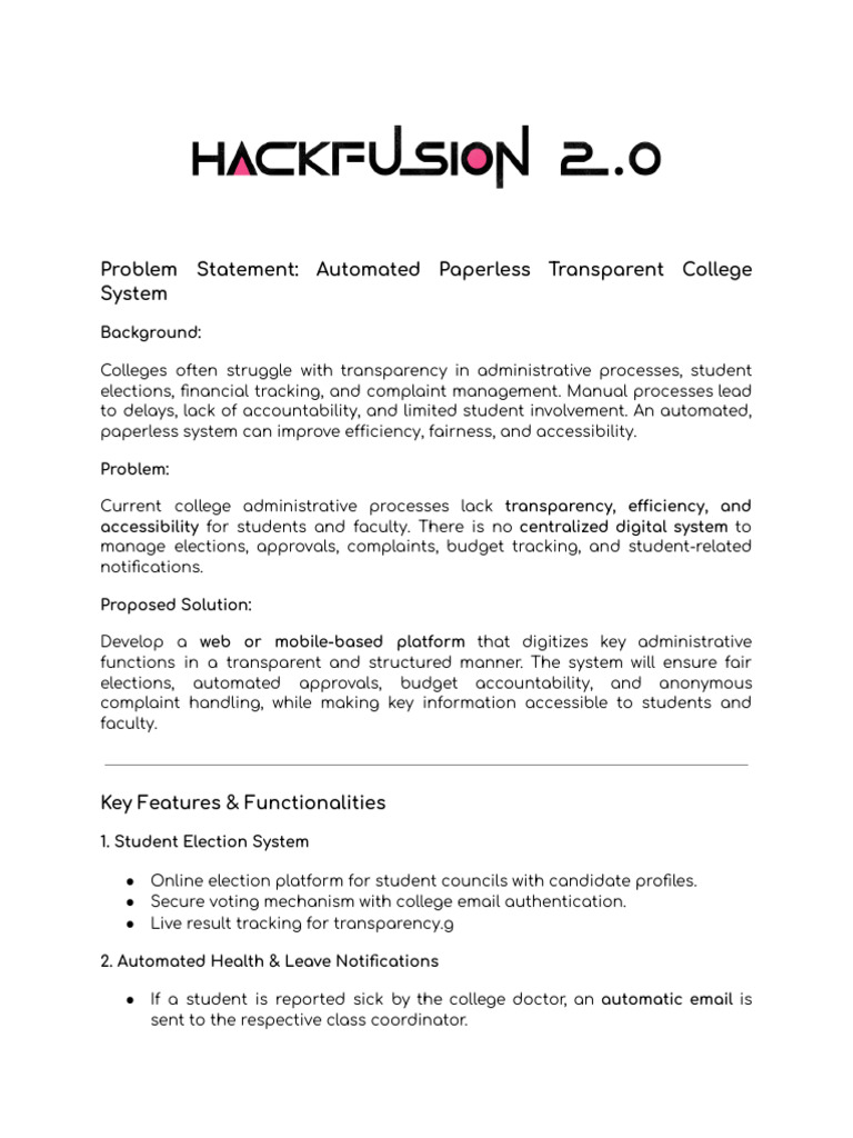 Problem Statement - Automated Paperless Transparent College System | PDF