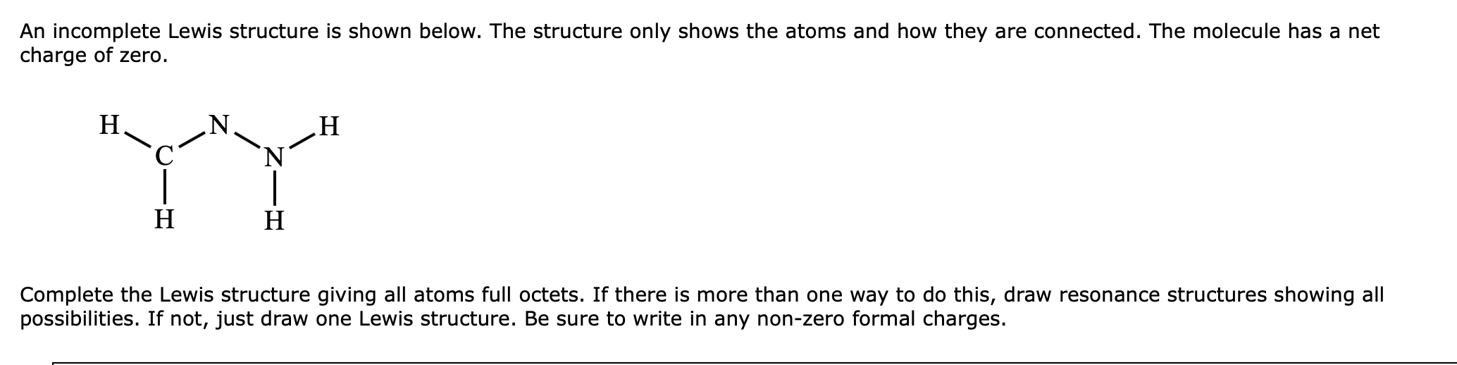 Draw an alternative Lewis (resonance) structure for the incomplete ...