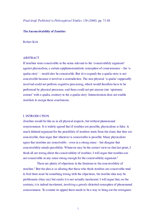 (PDF) Subjectivity, Multiple Drafts and the Inconceivability of Zombies ...