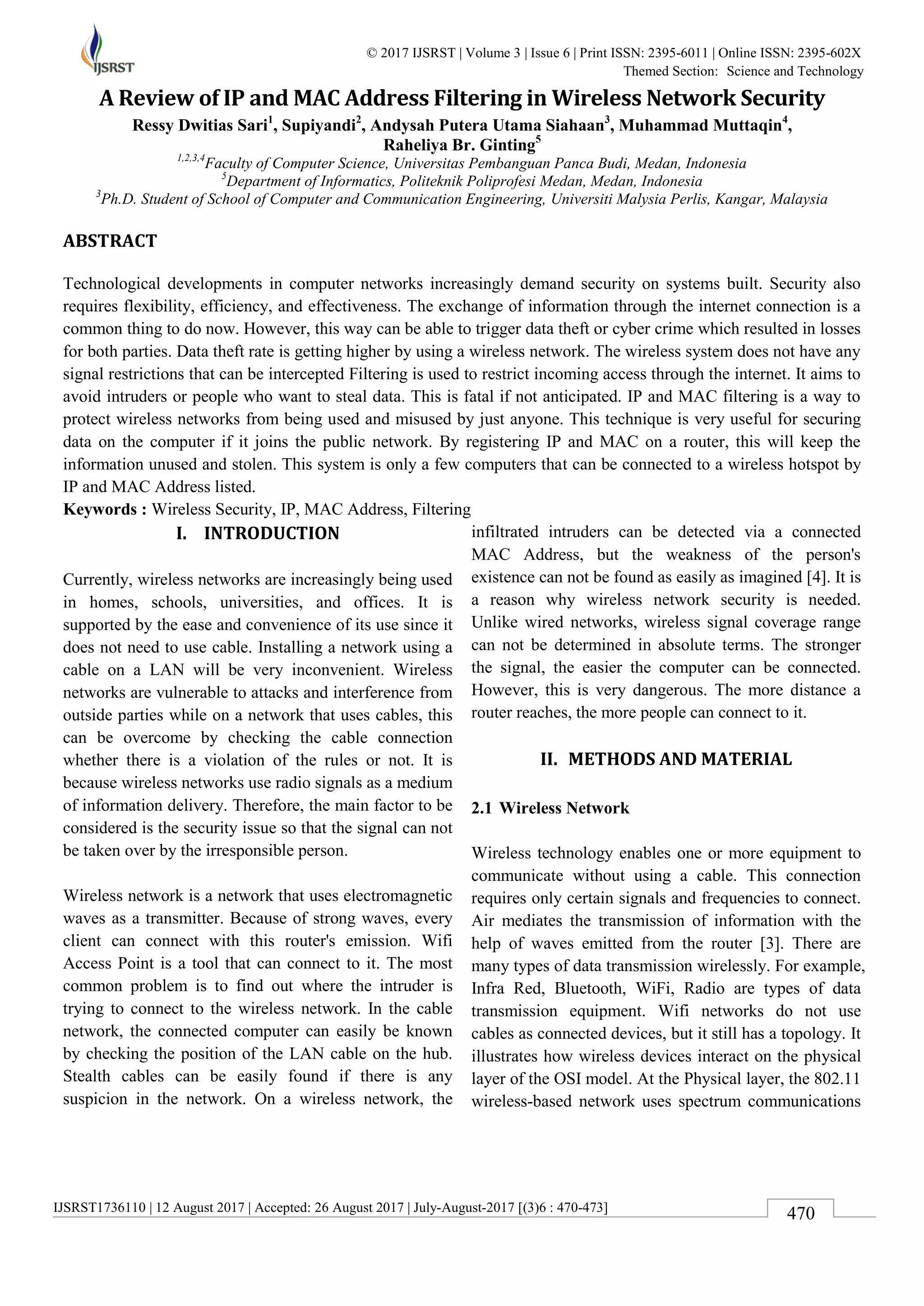 A Review of IP and MAC Address Filtering in Wireless Network Security | PDF