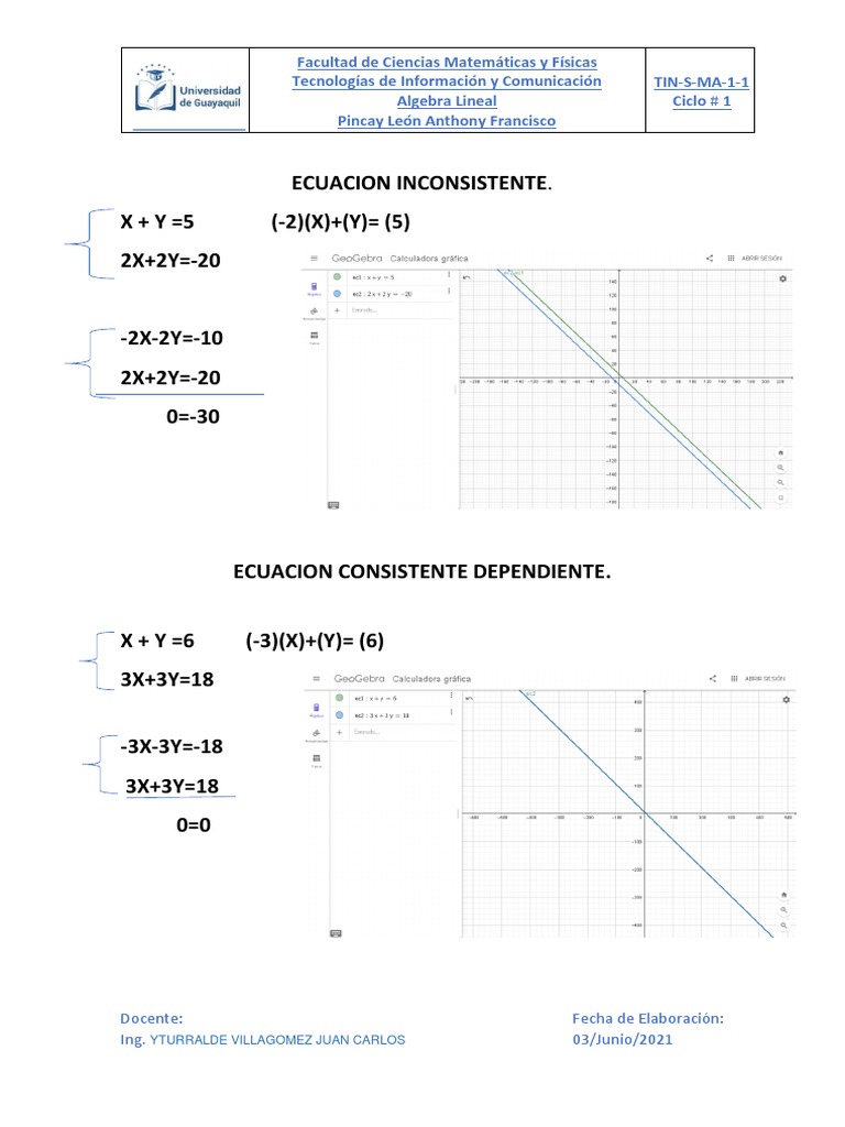 Ecuaciones Inconsistentes, Consistentes o Consistentes Dependientes on ...