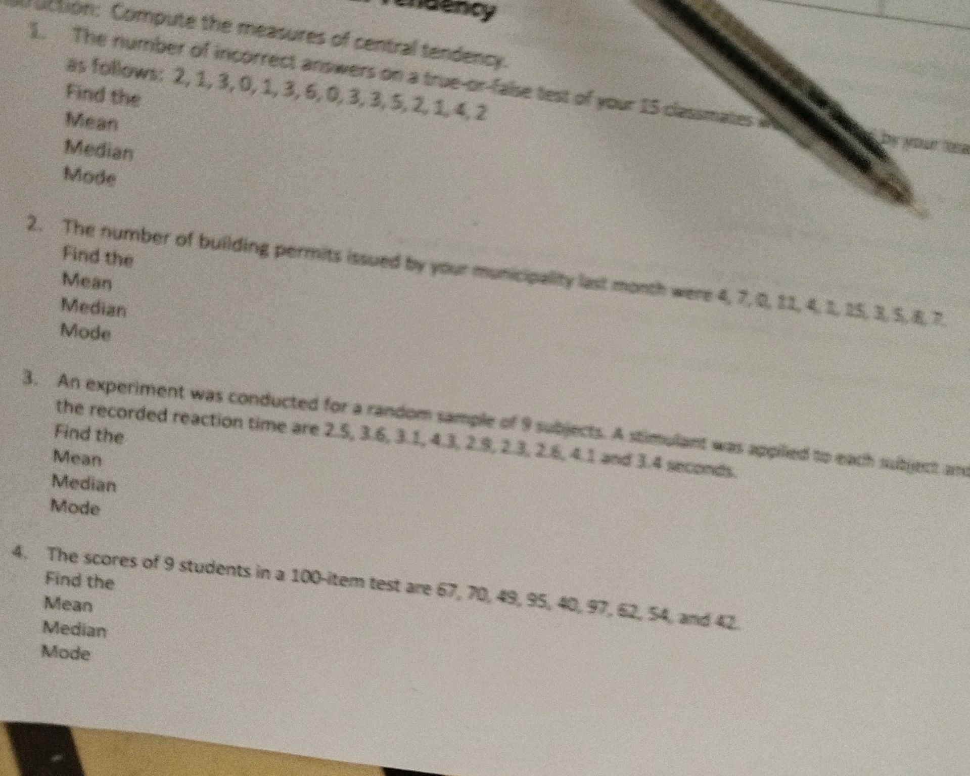 1. The number of incorrect answers on a | StudyX