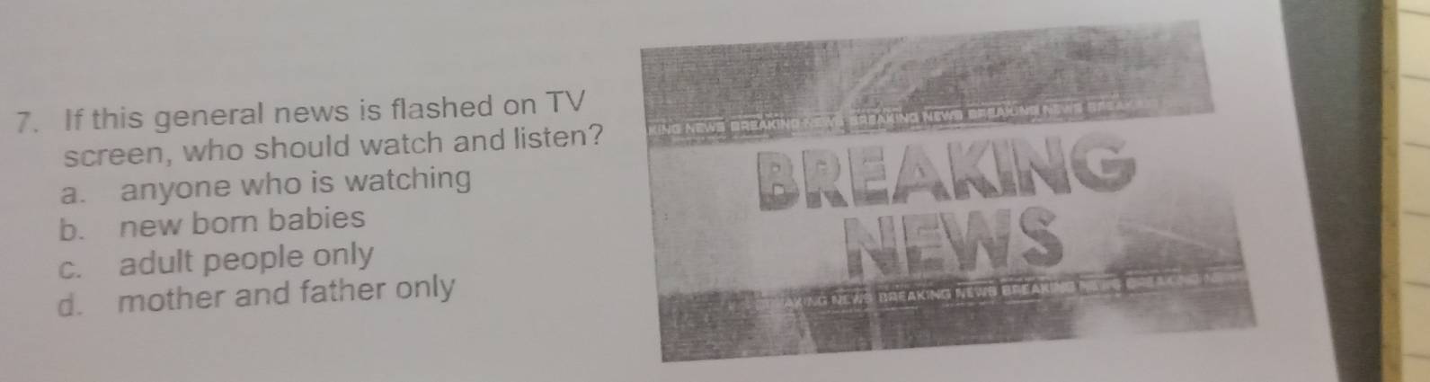 Solved: If this general news is flashed on TV screen, who should watch ...