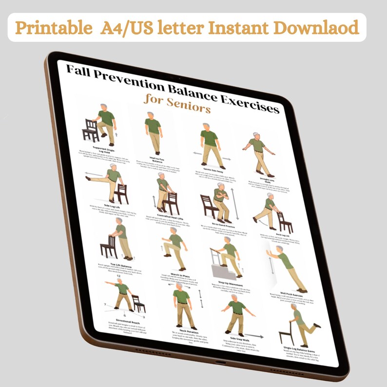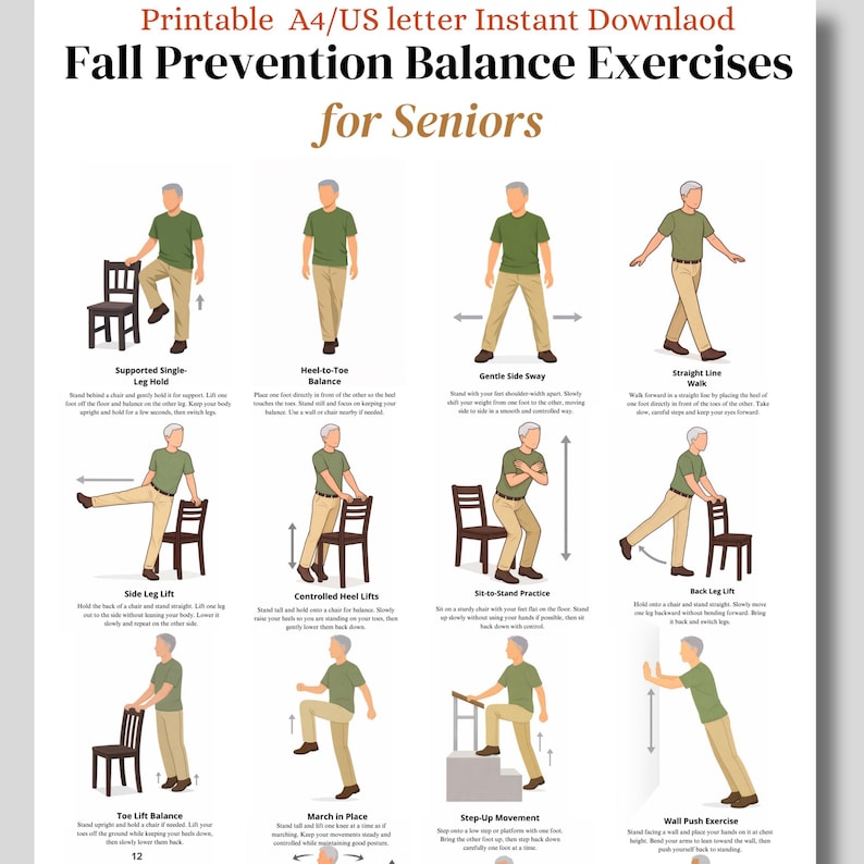 Fall Prevention Exercises for Seniors Printable, Chair Exercises PDF ...