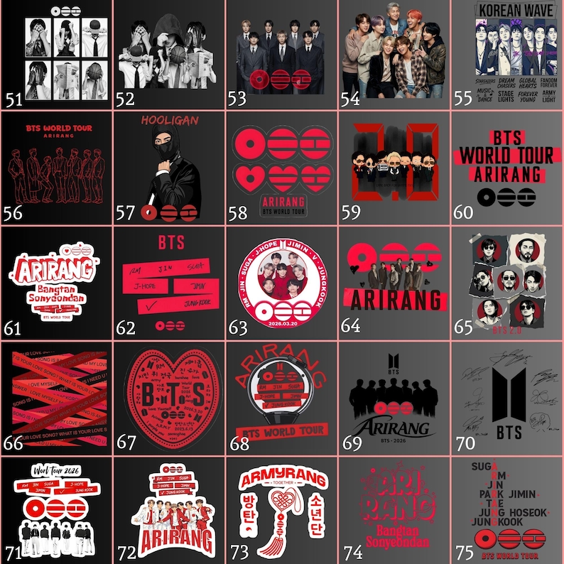 BTS World Tour Arirang 90+ Designs DTF Transfer – K-pop Merch for DTF ...