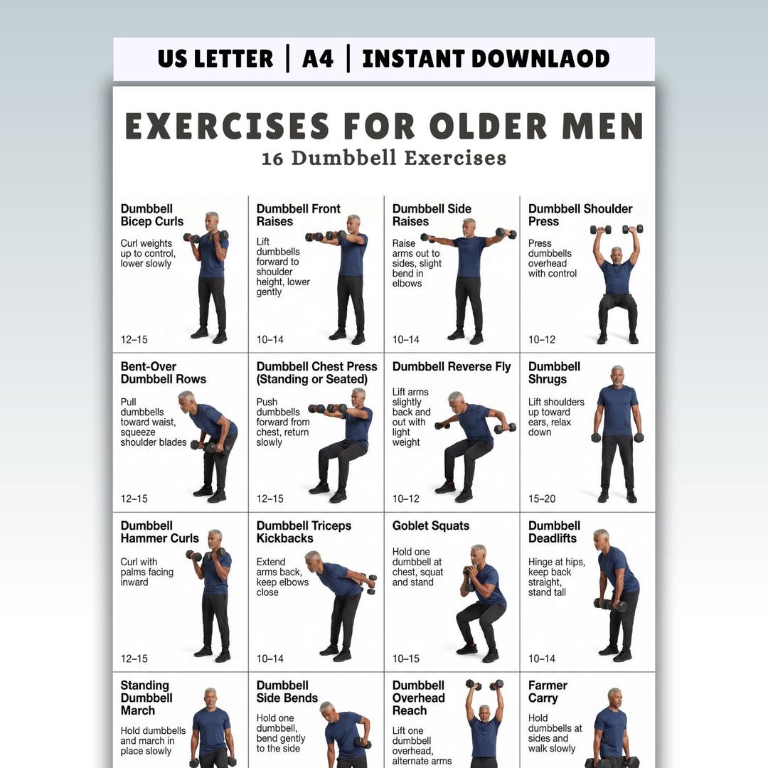 Exercises for Older Men Printable – 16 Dumbbell Exercises, Standing ...