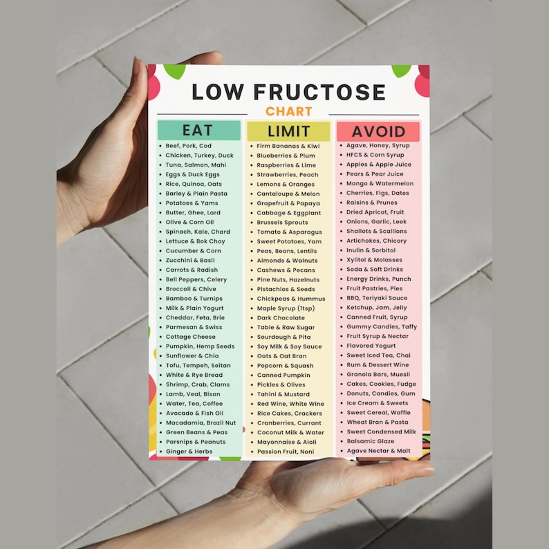 Low Fructose Food List Printable | Low Fructose & Low Sugar Diet Chart ...