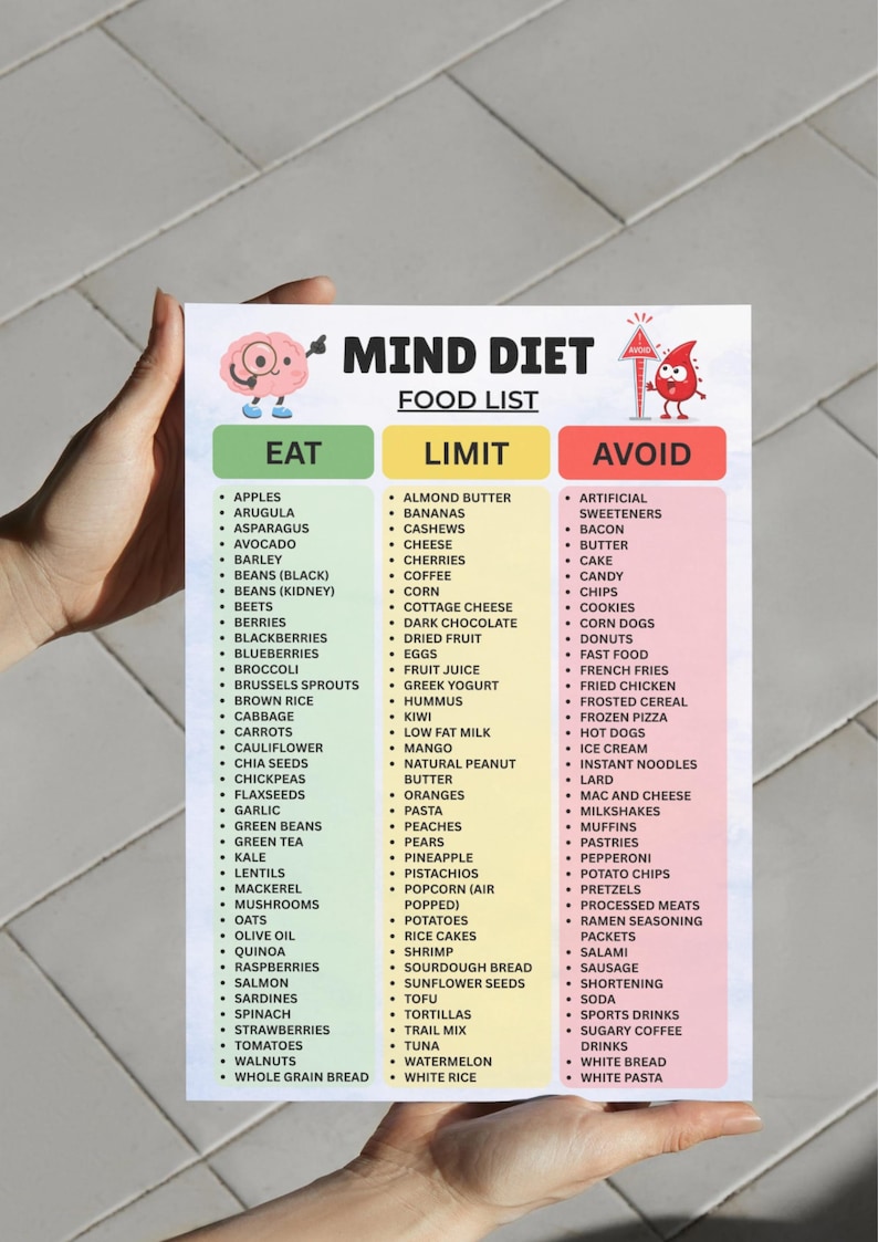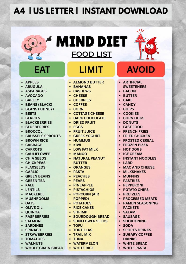 MIND Diet Food List Printable PDF, Brain Friendly Grocery Chart, Memory ...