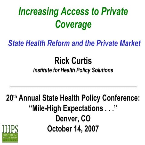 Increasing Access to Private Coverage: State Health Reform and the ...