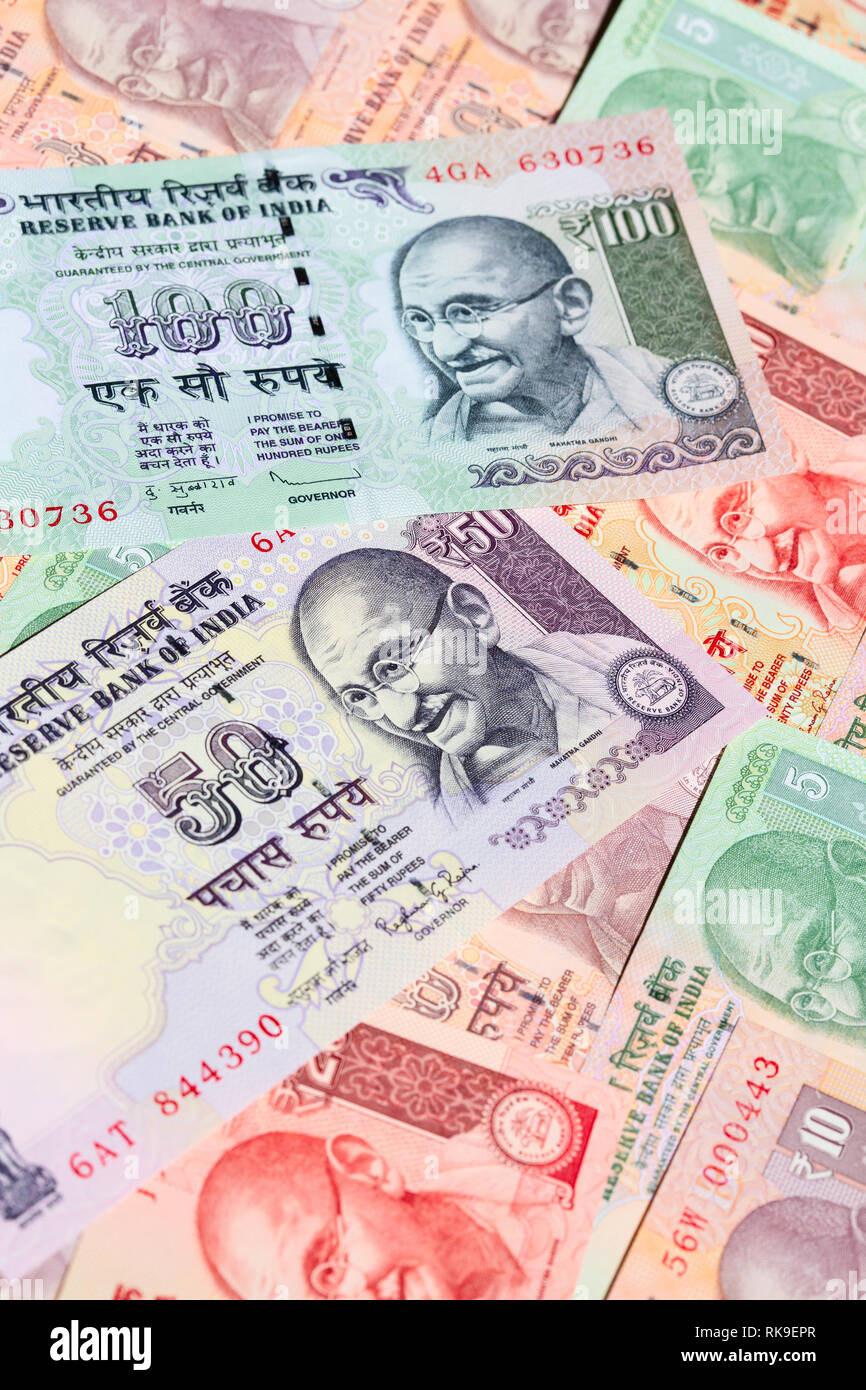 Collection of the Indian banknotes Stock Photo - Alamy
