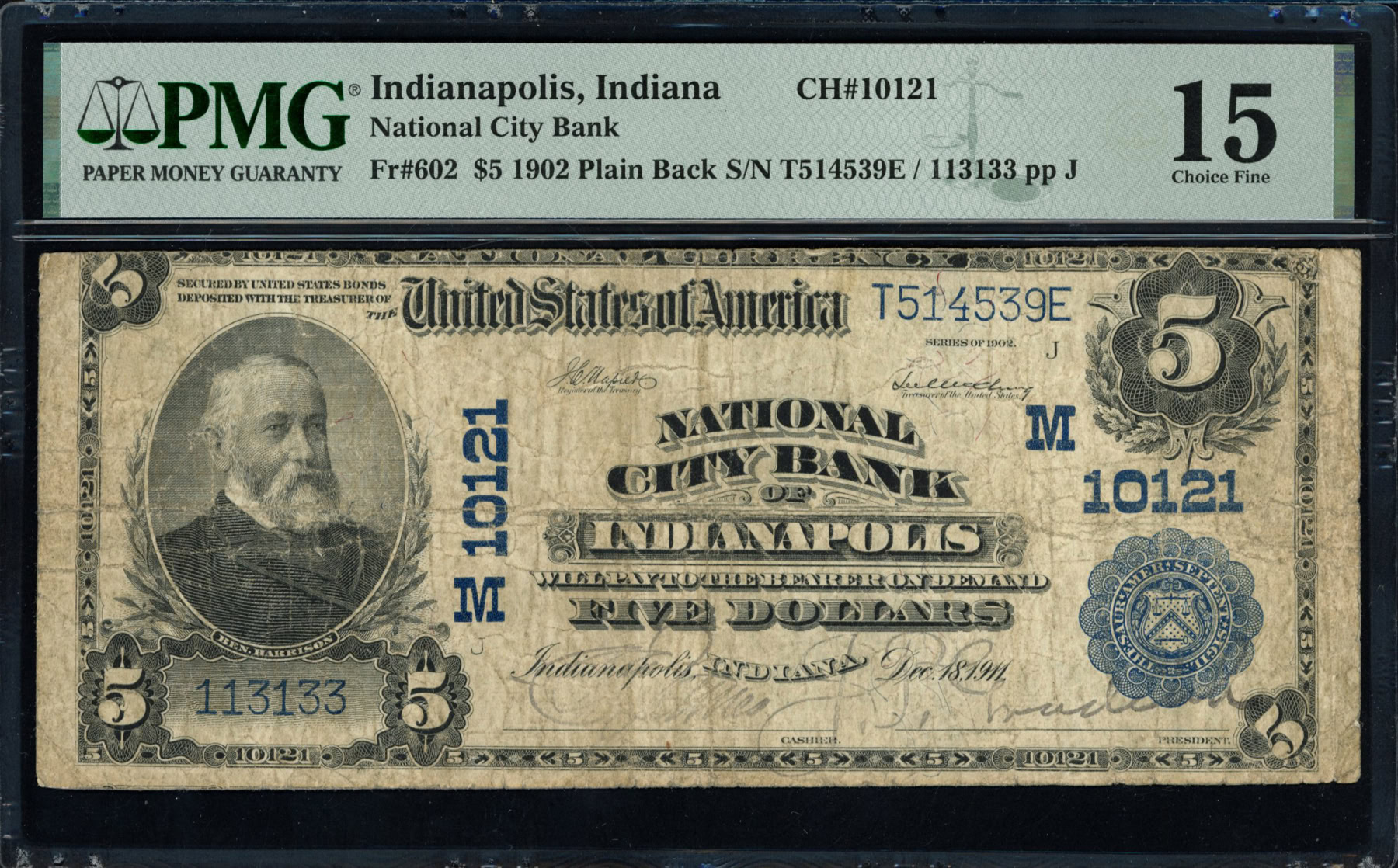 Fr. 602 Indianapolis, Indiana 1902 $5 Plain Back Note National City ...