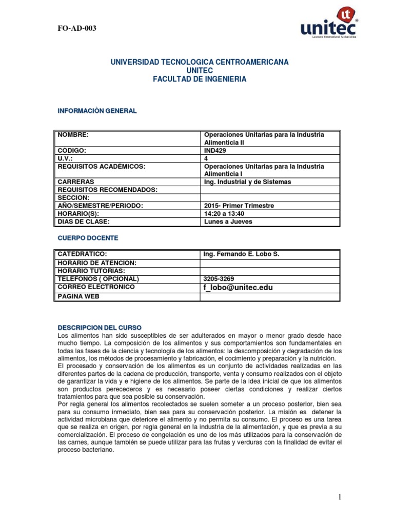 Silabo - Ind429 Operaciones Unitarias en La Industria Alimenticia II ...