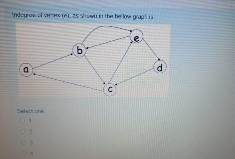 Solved Indegree of vertex (e), as shown in the bellow graph | Chegg.com