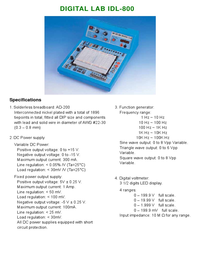 IDL-800 Digital Lab Specifications | PDF | Technology & Engineering