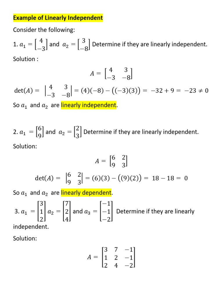 Linear Independence and Matrix Rank Examples | PDF | Linear Algebra ...