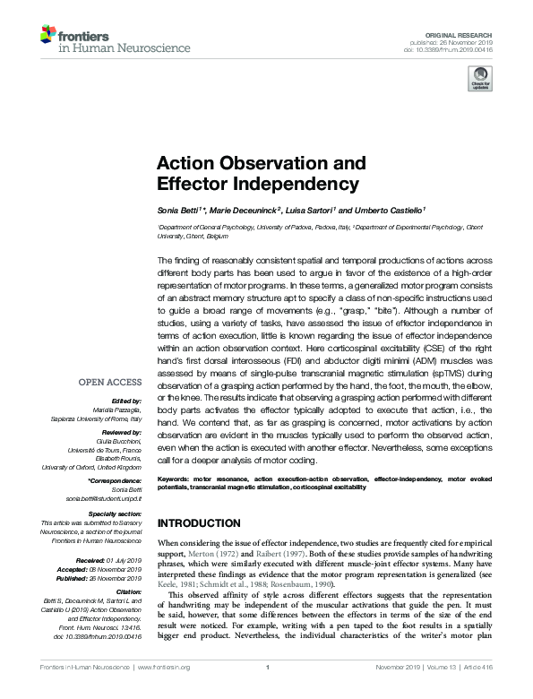(PDF) Action Observation and Effector Independency | Luisa Sartori ...