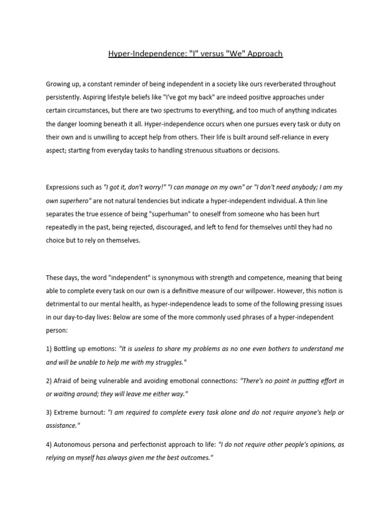 Hyper-Independency (Content Wrting) | PDF | Cognition | Social Psychology