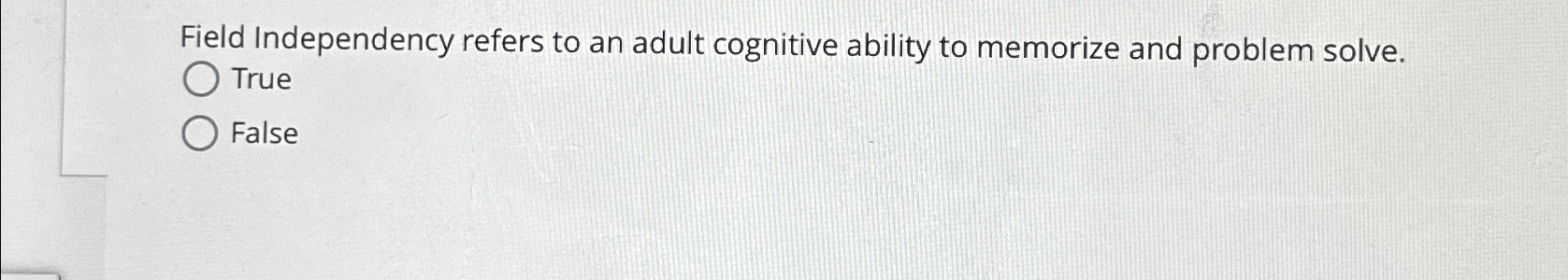 Solved Field Independency refers to an adult cognitive | Chegg.com