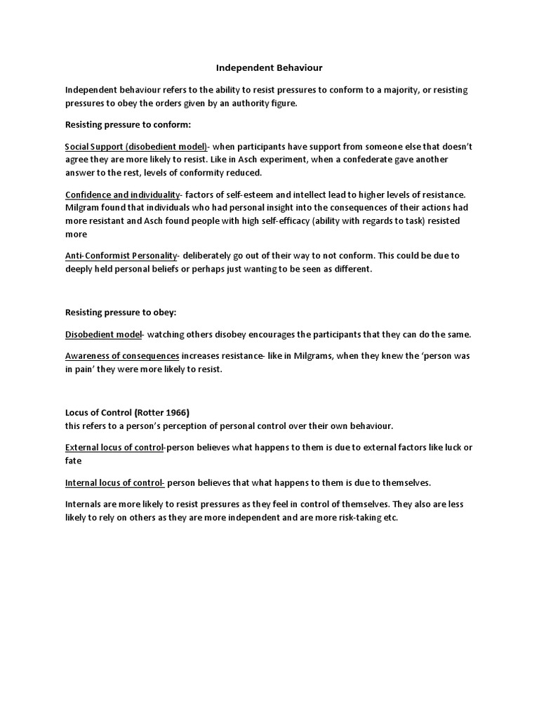 Understanding Independent Behavior | PDF | Conformity | Obedience ...